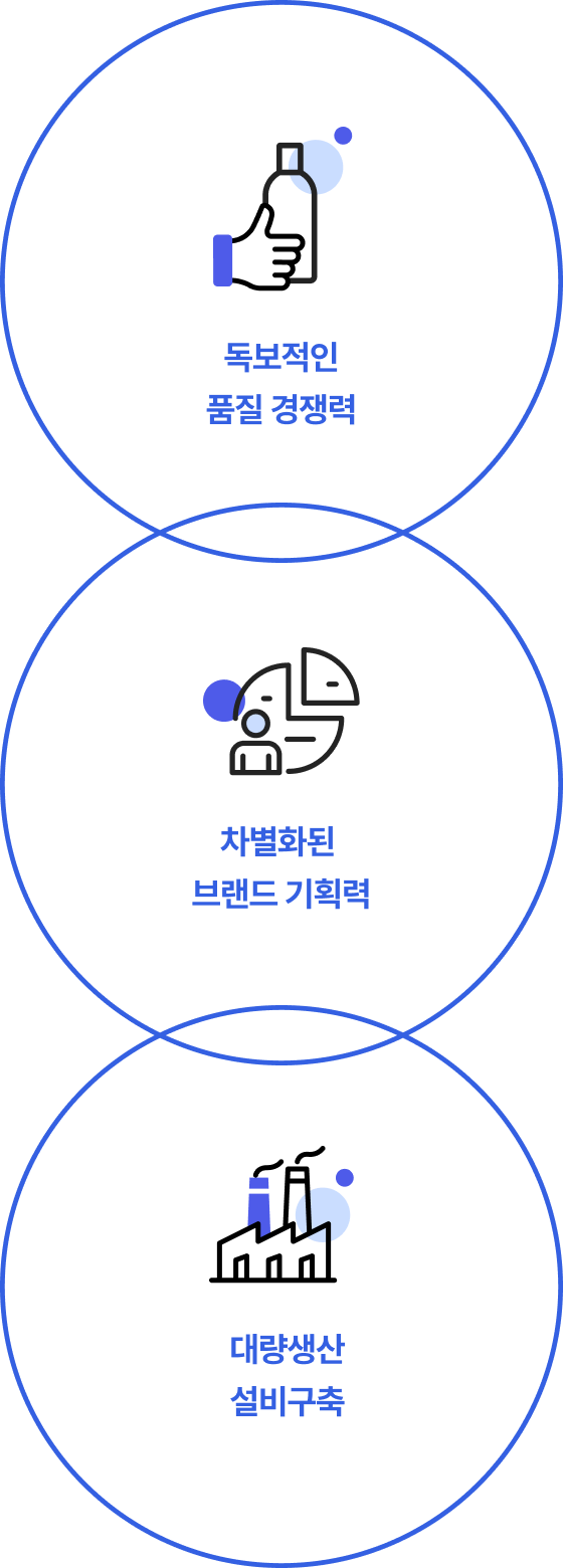국내 최고의 화장품 전문가들로 구성된 독보적인 R&D, 마케팅, 생산 전문 인력과 대량 생산 설비가 구축된